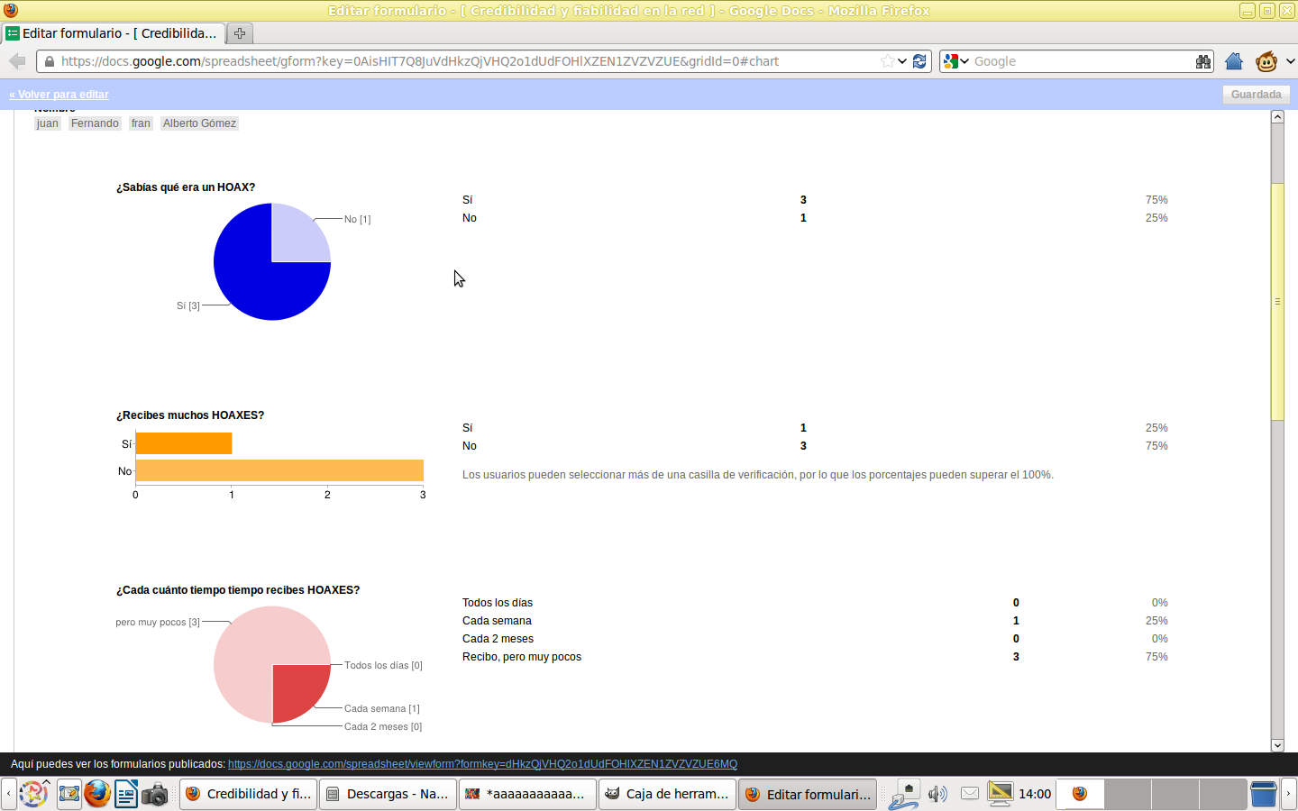 Que el tema de los HOAX, era bastante interesante, sin embargo, a nosotros se nos hizo un poco aburrida esa práctica de tener que buscarlos, cómo identificarlos...